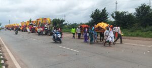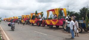 ಮೆರವಣಿಗೆಯದ್ದಕ್ಕೂ ಕುಂಭ ಹೊತ್ತ ಮಹಿಳೆಯರು, ಶೃಂಗಾರಗೊಂಡ ಟ್ರ್ಯಾಕ್ಟರ್ ಮೆರವಣಿಗೆ ಎತ್ತಿನ ಬಂಡಿಗಳು, , ಡೊಳ್ಳಿನ ಮಜಲು ನಂದಿಕೋಲು ಮೇಳಗಳು ಯುವಕರ ಕೋಲಾಟ ನೋಡುಗರ ಕಣ್ಮನ ಸೆಳೆಯುವ ರೀತಿಯಲ್ಲಿ ಇದ್ದವು. ನೂತನ ಶ್ರೀ ಗೋಣಿ ಬಸವೇಶ್ವರ ದೇವಸ್ಥಾನದ ವರೆಗೆ ವಿಜ್ರಂಭಣೆಯಿಂದ ಮೆರವಣಿಗೆ ನಡೆಯಿತು.