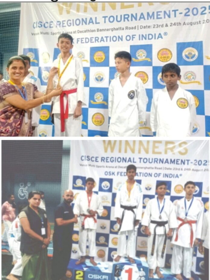 ಗದಗ : ದಿನಾಂಕ ೨೩ ಮತ್ತು ೨೪ನೇ ಅಗಸ್ಟ ೨೦೨೫ ರಂದು ರಾಜ್ಯ ಮಟ್ಟದ ಸಿ.ಐ.ಎಸ್.ಸಿ.ಇ. ಕರಾಟೆ ಪಂದ್ಯಾವಳಿಯನ್ನು ಮಲ್ಟಿ ಸ್ಪೋರ್ಟ್್ಸ ಅರೀನಾ ಅಟ್ ಡೆಕತ್ಲಾನ್, ಬನ್ನೇರುಘಟ್ಟ ರೋಡ, ಬೆಂಗಳೂರನಲ್ಲ್ಲಿ ಹಮ್ಮಿಕೊಳ್ಳಲಾಗಿತ್ತು. ಗದಗ ವಿನಯ ಚಿಕ್ಕಟ್ಟಿ ಐ.ಸಿ.ಎಸ್.ಇ. ಶಾಲೆಯ ಇಬ್ಬರು ವಿದ್ಯಾರ್ಥಿಗಳು ಭಾಗವಹಿಸಿದ್ದು, ಪ್ರಥಮ ಸ್ಥಾನವನ್ನು ೮ನೇ ತರಗತಿಯ ಕುಮಾರ ಮೊಹಮ್ಮದ ತಾಹೀಮ ಗೋನಾಳ ಬಂಗಾರದ ಪದಕ ಗೆದ್ದು ರಾಷ್ಟçಮಟ್ಟಕ್ಕೆ ಆಯ್ಕೆಯಾಗಿದ್ದಾನೆ ಮತ್ತು ದ್ವಿತೀಯ ಸ್ಥಾನವನ್ನು ೧೦ನೇ ತರಗತಿಯ ಕುಮಾರ ಮೊಹಮ್ಮದ ಶಬ್ಬೀರ್ ಸಾಕೀಬ್ ಬೆಳ್ಳಿ ಪದಕ ಗಳಿಸಿದ್ದಾನೆ. ಇವರ ಸಾಧನೆಗೆ ಚಿಕ್ಕಟ್ಟಿ ಶಾಲಾ ಕಾಲೇಜಿನ ಅಧ್ಯಕ್ಷರಾದ ಪ್ರೊ. ಎಸ್. ವಾಯ್. ಚಿಕ್ಕಟ್ಟಿ, ಪ್ರಾಚಾರ್ಯರಾದ ಶ್ರೀ ವಿನಯ್ ಎಸ್. ಚಿಕ್ಕಟ್ಟಿ, ಪ್ರಾಂಶುಪಾಲರಾದ ಶ್ರೀ ಬಿಪಿನ್ ಎಸ್. ಚಿಕ್ಕಟ್ಟಿ, ಉಪಪ್ರಾಚಾರ್ಯರಾದ ಶೋಭಾ ಎಸ್. ಸ್ಥಾವರಮಠ, ಶಿಕ್ಷಕ/ಕಿ ವೃಂದದವರು ಮತ್ತು ಸಿಬ್ಬಂದಿ ವರ್ಗದವರು ಹಾಗೂ ಮುಷ್ಠಿ ಕರಾಟೆ ಪೌಂಡೇಶನ್ನ ತರಬೇತುದಾರರಾದ ಶ್ರೀ ಬಸವರಾಜ ಹೊಂಬಾಳಿ ಶುಭ ಹಾರೈಸಿ ಎಲ್ಲರೂ ಸಂತಸ ವ್ಯಕ್ತ ಪಡಿಸಿದ್ದಾರೆ.