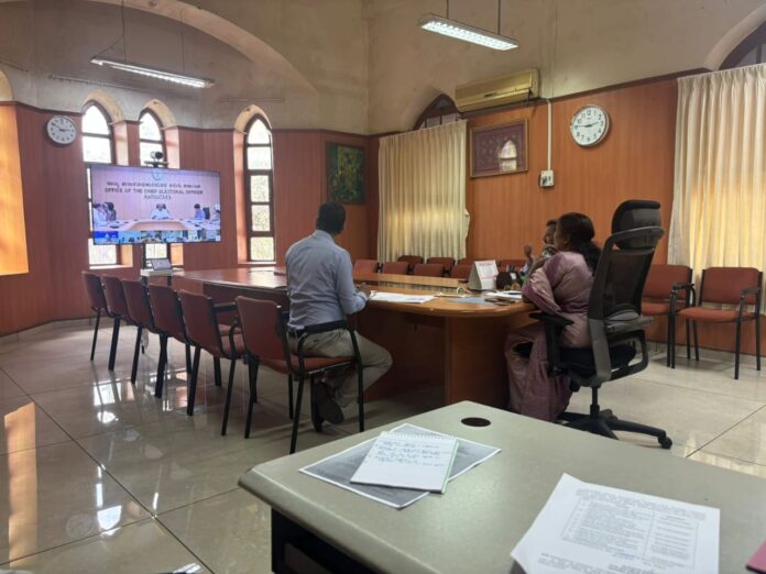 ಗದಗ : ಮಾನ್ಯ ಮುಖ್ಯ ಚುನಾವಣಾಧಿಕಾರಿಗಳು, ಬೆಂಗಳೂರು ಇವರ ಅಧ್ಯಕ್ಷತೆಯಲ್ಲಿ ದಿನಾಂಕ:03.10.2025 ರಂದು ಕರ್ನಾಟಕ ಪಶ್ಚಿಮ ಪದವೀಧರರ ಕ್ಷೇತ್ರದ ಮತದಾರರ ನೋಂದಣಾಧಿಕಾರಿಗಳ, ಸಹಾಯಕ ಮತದಾರರ ನೋಂದಾಣಾಧಿಕಾರಿಗಳ ವಿಡಿಯೋ ಸಂವಾಧ ಮೂಲಕ ಸಭೆಯನ್ನು ಜರುಗಿಸಲಾಗಿರುತ್ತದೆ.